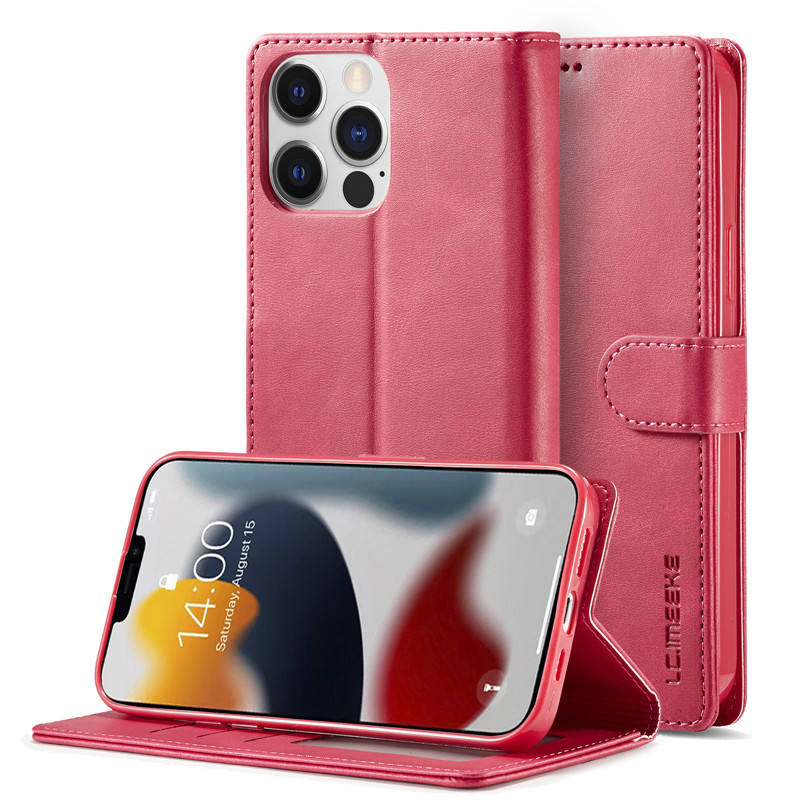 LC.imeeke กระเป๋าสตางค์พร้อมหัวเข็มขัดสําหรับ iPhone 13 PRO MAX พลิกแม่เหล็กฝาครอบโทรศัพท์ขาตั้ง