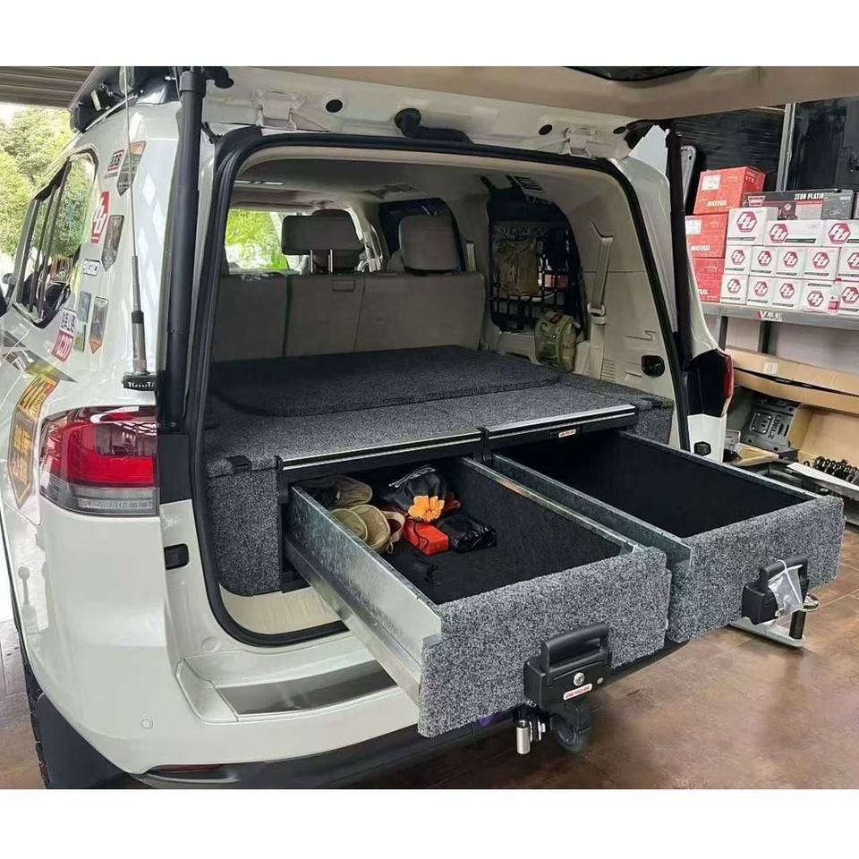 ระบบลิ้นชัก LC300 VRD4X4 ชุดลิ้นชักคู่แบบครบชุด อุปกรณ์เสริม LC300 กล่องเก็บของท้ายรถออฟโรด กล่องเก็บของแบบกำหนดเองสำหรับรถกระบะ 4WD ลิ้นชักแบบมีล้อ