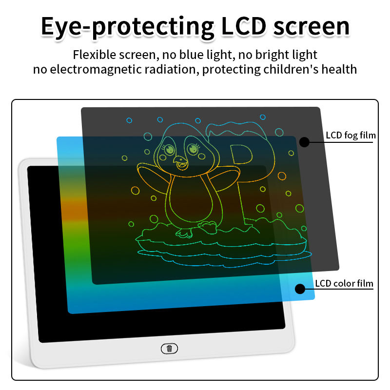 แท็บเล็ตการเขียนจอแอลซีดีสำหรับเด็กหัดเดินกระดานวาดรูปสำหรับทารกแผ่นวาดภาพเส้นขยุกขยิกของเด็กหน้าจอที่มีสีสันโลโก้13 16 20นิ้วขนาดใหญ่