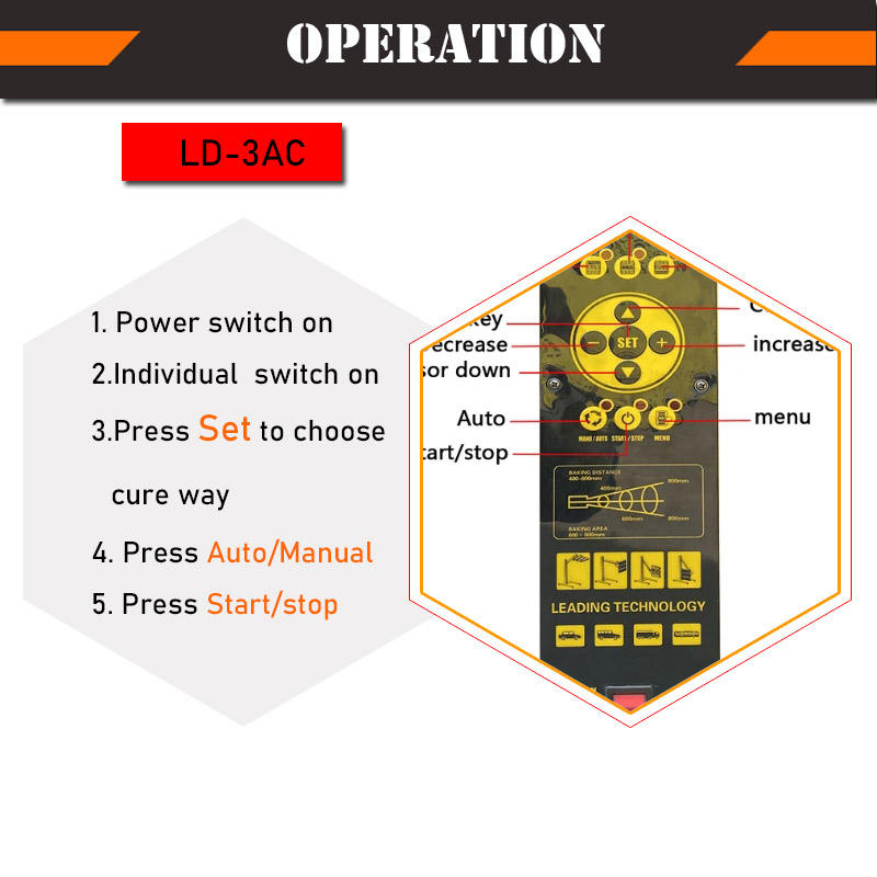 โคมไฟสีอินฟาเรดแผงดิจิทัล LD-3AC อุปกรณ์ดูแลรถยนต์ที่ผ่านการรับรอง CE