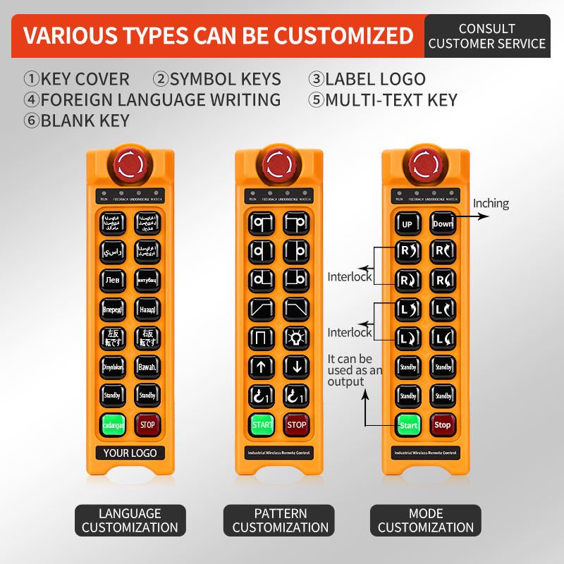LD-BC14 + อุตสาหกรรม868MHz รีโมทคอนโทรลไร้สาย8ปุ่ม12V 36V กันน้ำและปุ่มกดซิลิโคนที่เชื่อถือได้และฟีดแบ็คที่ดี