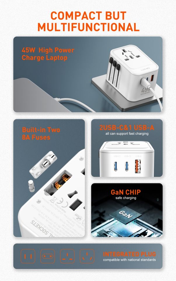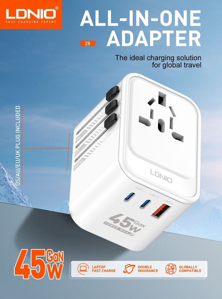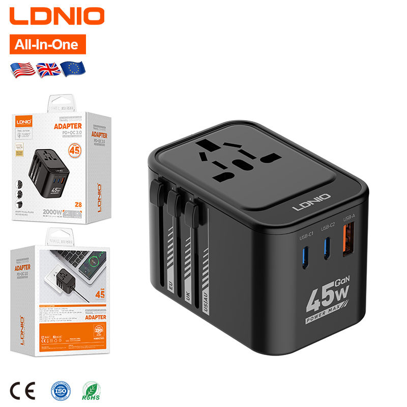 Ldnio Z8ชนิด C PD QC USB อะแดปเตอร์ชาร์จแบบออลอินวันสำหรับการเดินทางกับ EU US UK ปลั๊กชาร์จแบบสากล