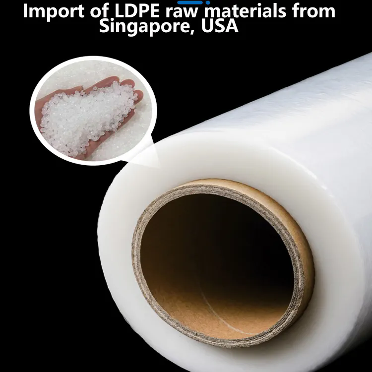 LDPE ฟิล์มยืดโพลีเอทิลีนใสแบบมีกาวในตัวบรรจุภัณฑ์พลาสติกใส