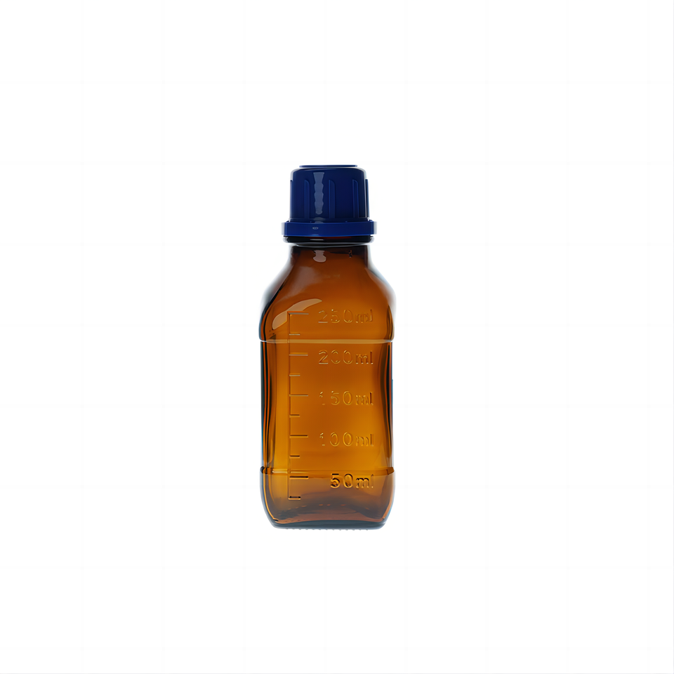 แหวนเท LDPE C16205 Uni-Sci พร้อมฝาเกลียว PP ขวดเหลี่ยมสีเหลืองอำพันขนาด100มล.-1000มล.
