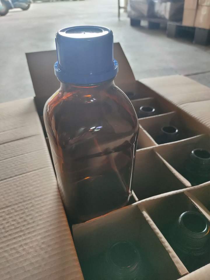 Amber Square Bottle with PP screw Cap and LDPE pouring ring