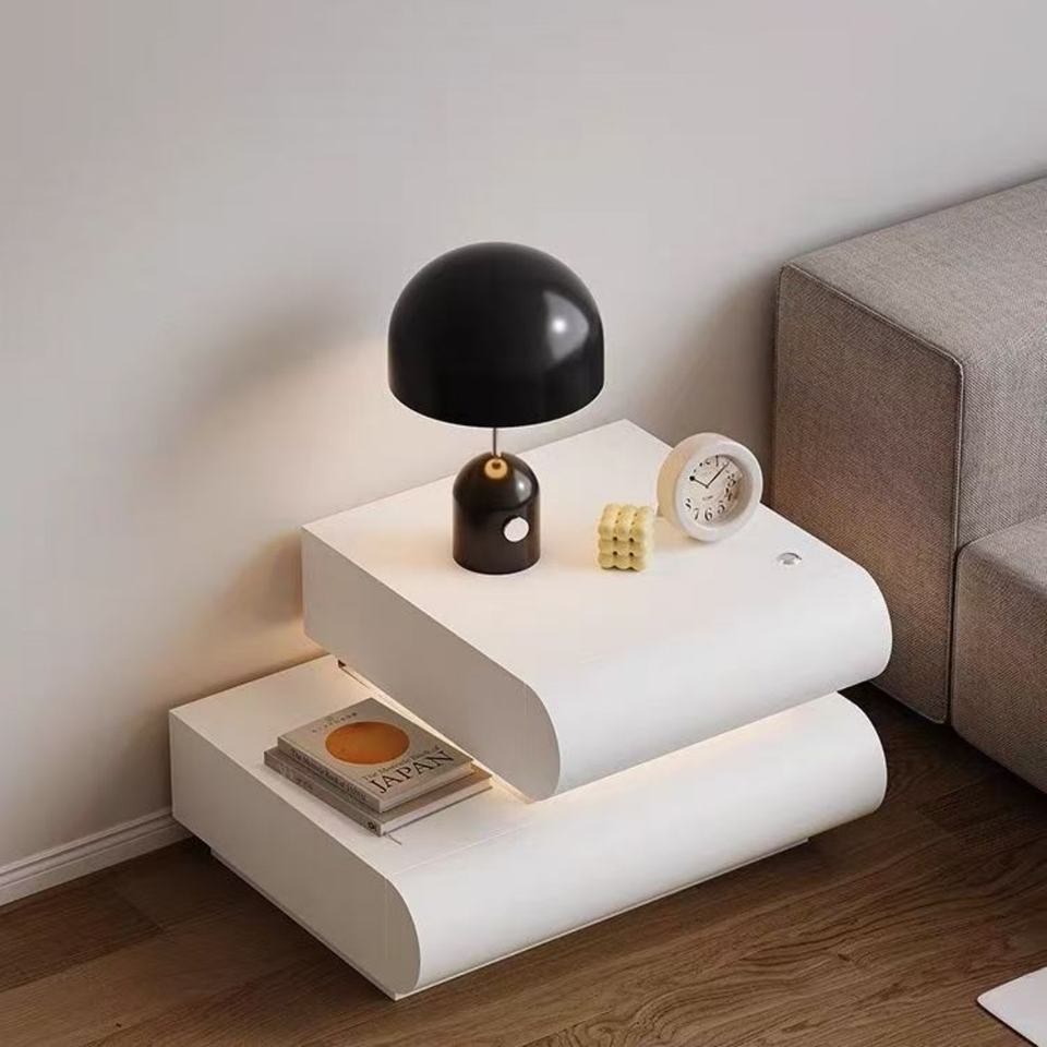 โต๊ะข้างเตียง LE Cream สไตล์อิตาลี ห้องนอน มินิมอล หนัง ไม้เนื้อแข็งใหม่ ตู้เก็บของสีขาว ตู้ข้างเตียง