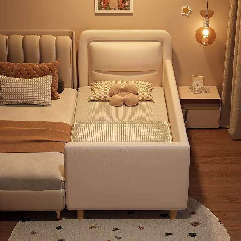 เตียงไม้เนื้อแข็ง LE แบบต่อประกอบ ขยายข้างเตียง เตียงขนาดเล็กพร้อมราวกั้น ปรับแต่งได้ เตียงขนาดใหญ่แบบต่อประกอบ