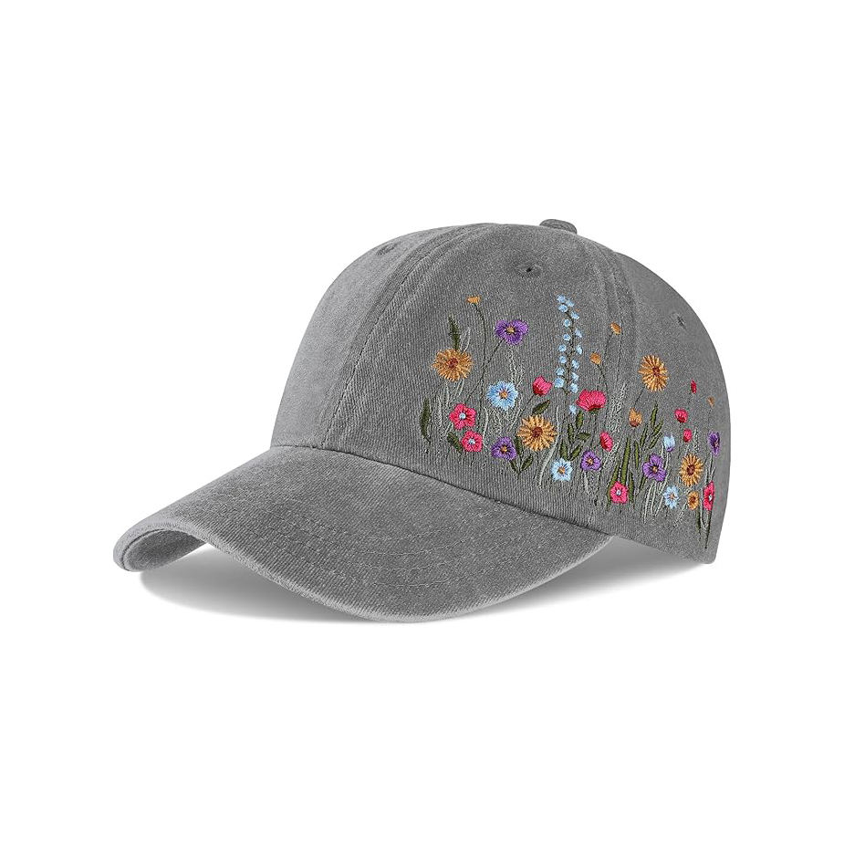 หมวกเบสบอลผ้าฝ้ายสีเทาซีด LEAFITS LFA-BC-30112 ปักลายดอกไม้ป่า ทรง 5 แฉก สไตล์ Dad Hat เนื้อผ้านุ่ม ไม่แข็งตัว ระบายอากาศได้ดี เหมาะสำหรับทุกเพศ