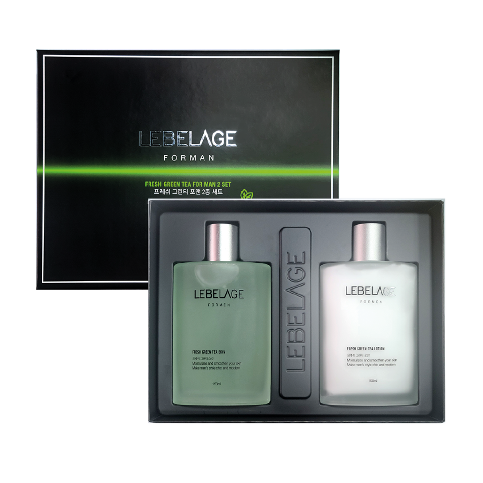 Lebelage ชุดสกินแคร์2ชิ้นสำหรับผู้ชายชุดมาส์กหน้าเพื่อความงามชาเขียวสดเกาหลี