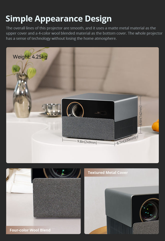 โปรเจคเตอร์ LED 1080P 4K ลำโพงในตัว ระบบหลบหลีกสิ่งกีดขวาง ตั้งค่าอัตโนมัติ เสียงรบกวนต่ำ 35 เดซิเบล ปรับตำแหน่งหน้าจอได้ สำหรับห้องนอน รองรับการสตรีม
