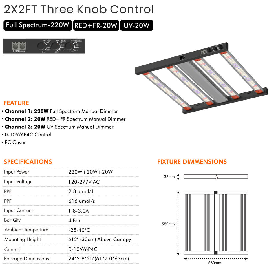 ไฟเรืองแสง LED 220W แบบเต็มสเปกตรัม + 20W ชิป UV สีแดงและสีแดงเข้ม + 20W สำหรับคนขับรถไฟ LED ปลูกต้นไม้