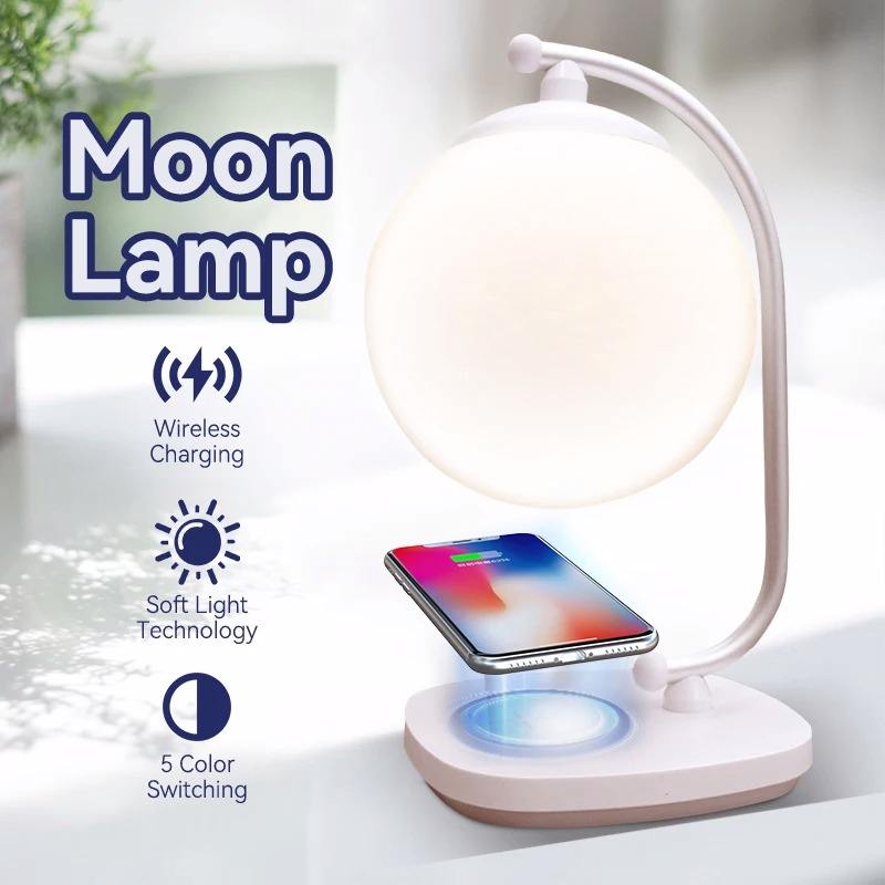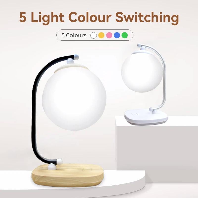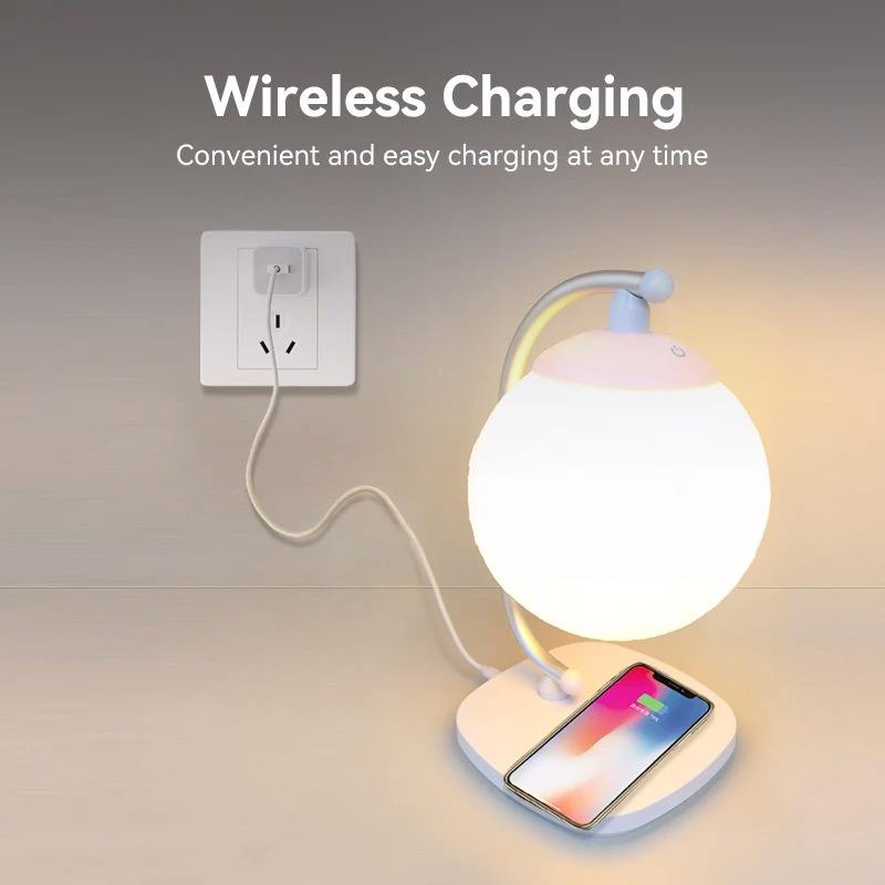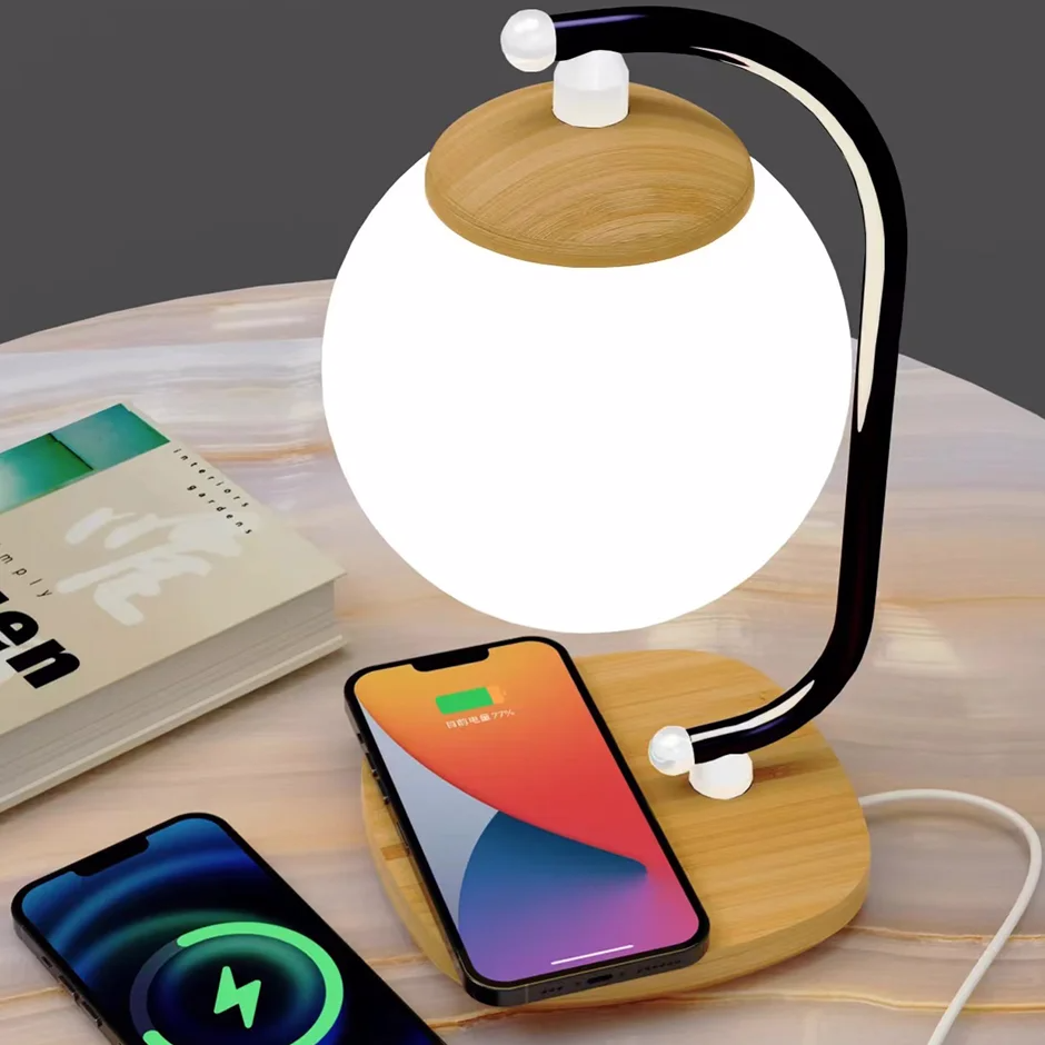 ไฟ LED สร้างบรรยากาศ, ไฟข้างเตียงในห้องนอน, โคมไฟตั้งโต๊ะทรงกลม, ไฟอุ่นอเนกประสงค์แบบ USB พร้อมระบบชาร์จไร้สายและป้องกันดวงตา