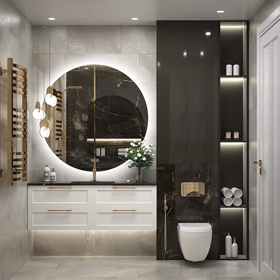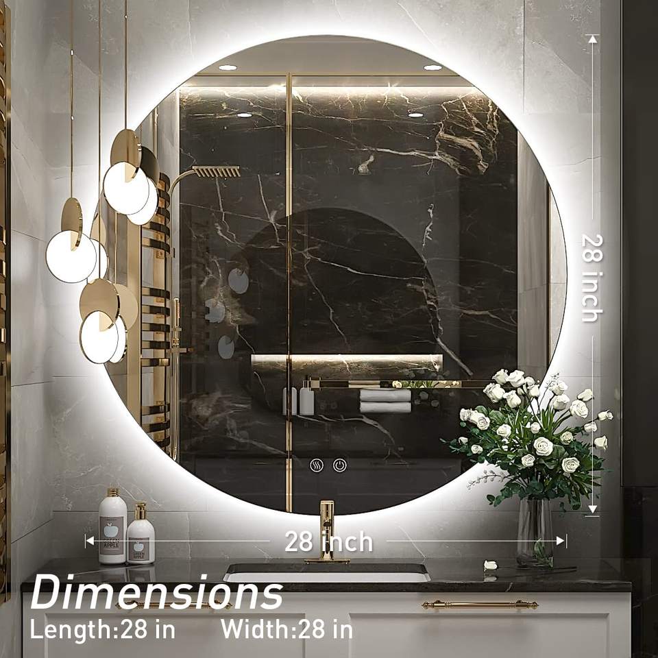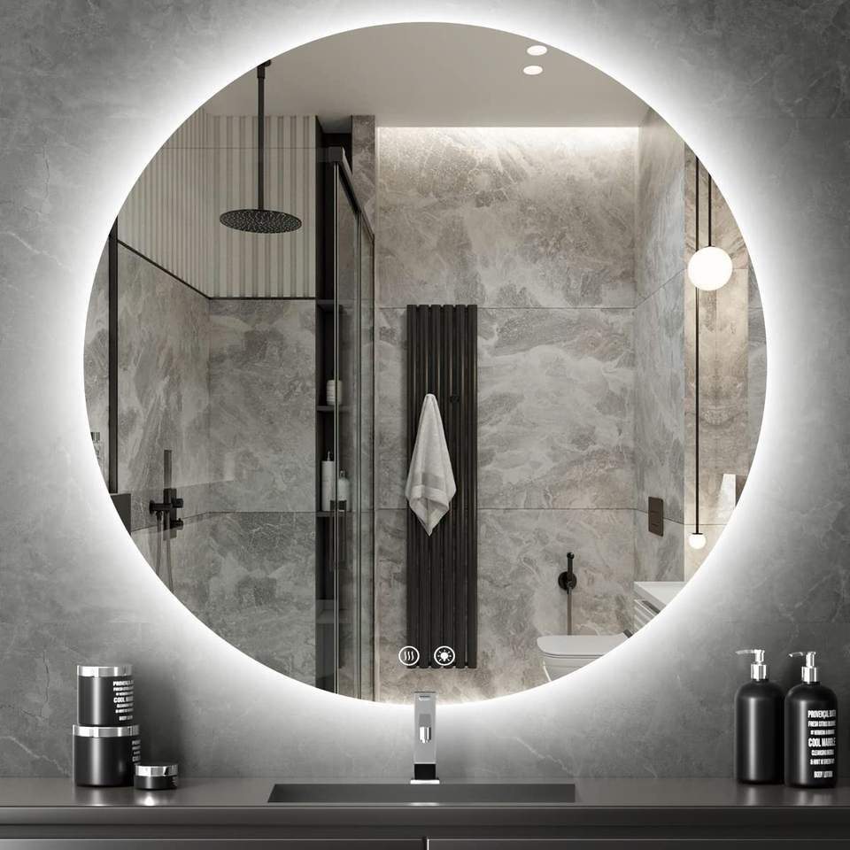 กระจกห้องน้ำ LED ทรงกลมติดผนัง, ห้องน้ำในโรงแรมมีกระจกไฟติดผนังกันฝ้ากระจกห้องน้ำอัจฉริยะ