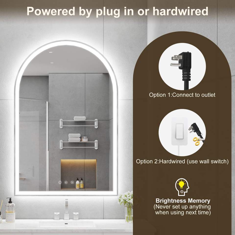 กระจกโต๊ะเครื่องแป้งในห้องน้ำ LED กระจกติดผนังปรับได้3สีไม่เหมือนใครปรับได้, กระจกกันหมอกติดผนังกระจกเทมเปอร์ปรับแสงได้