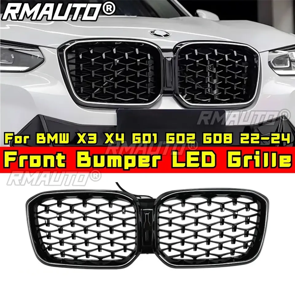 ตะแกรงกันชน LED สำหรับรถ BMW G01 X4M X4 X3 G08 G02รถ2022-2024ชุดอุปกรณ์ตกแต่งกระจังหน้ารถ