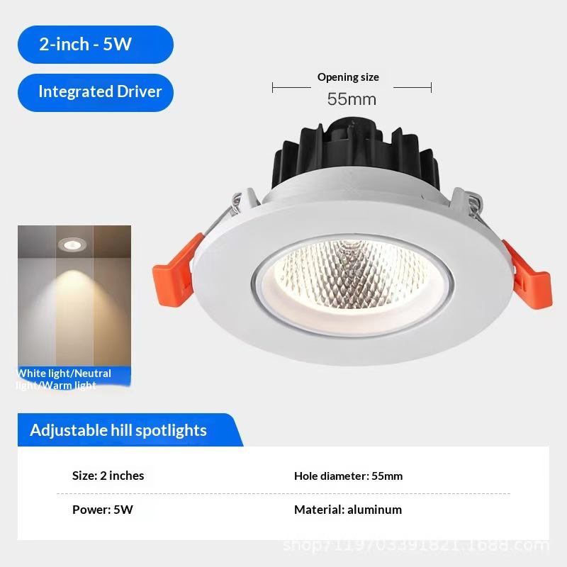 LED COB 5W/7W Spotlights Recessed Ceiling Lights Stainless Steel Lamp Body Aluminum Alloy Shell 6000K Daylight Bullseye Effect
