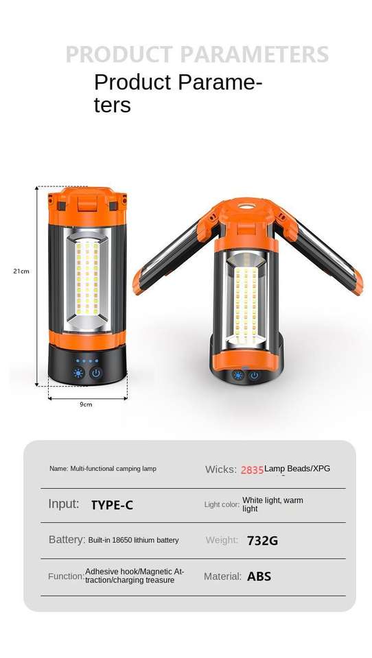 ลักษณะ:แบบพกพา, ชาร์จได้, อเนกประสงค์, กันน้ำ, แขวน, ควบคุมแบบไร้สาย, ความสว่างสูง, ติดตั้งง่าย