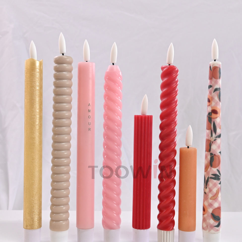 เทียนแอลอีดีไร้เปลวไฟเทียนเรียวสีงาช้างสำหรับตกแต่งงานแต่งงานในบ้านเทศกาลคริสต์มาส