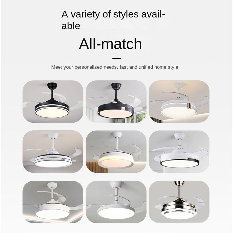 พัดลมเพดานแบบโคมไฟระย้า LED พร้อมใบพัด 5 ใบ มอเตอร์ DC โครงสร้างโลหะ รีโมทคอนโทรล ดีไซน์ทันสมัย พร้อมไฟ