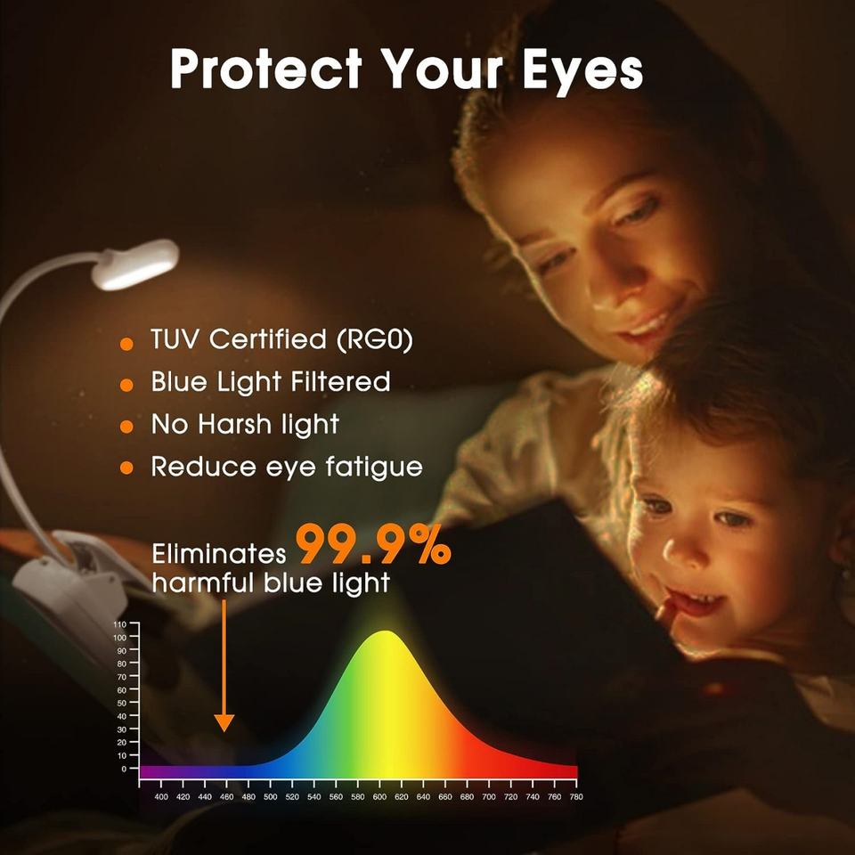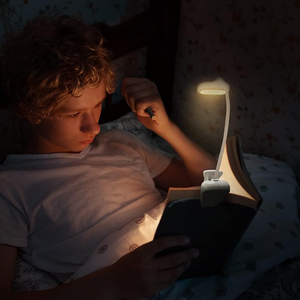 ไฟอ่านหนังสือแบบคลิป LED ปรับความสว่างได้ 4 ระดับ สีขาว ชาร์จผ่าน USB ใช้สำหรับอ่านหนังสือบนเตียง