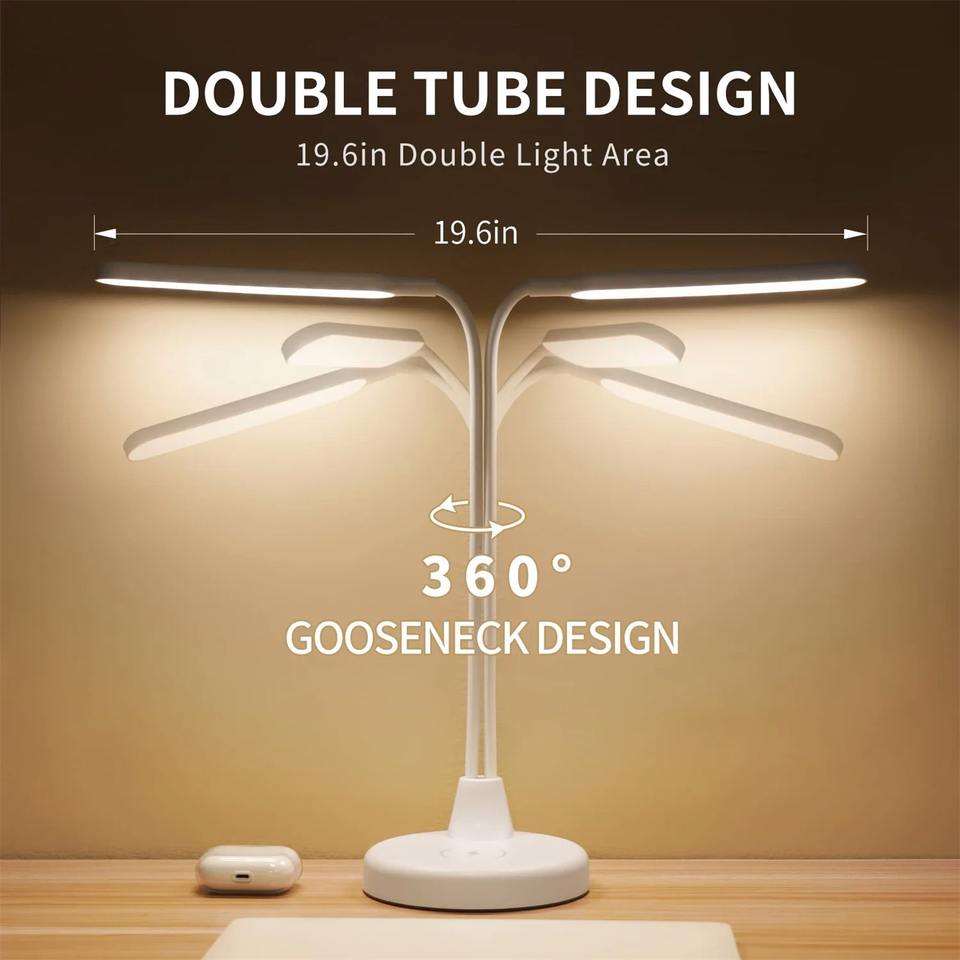 โคมไฟตั้งโต๊ะ LED พร้อมที่ชาร์จไร้สายโคมไฟตั้งโต๊ะปรับได้แบบคอห่านโคมไฟควบคุมด้วยการสัมผัสไฟกลางคืนไฟสองดวงสำหรับบ้านสำนักงาน