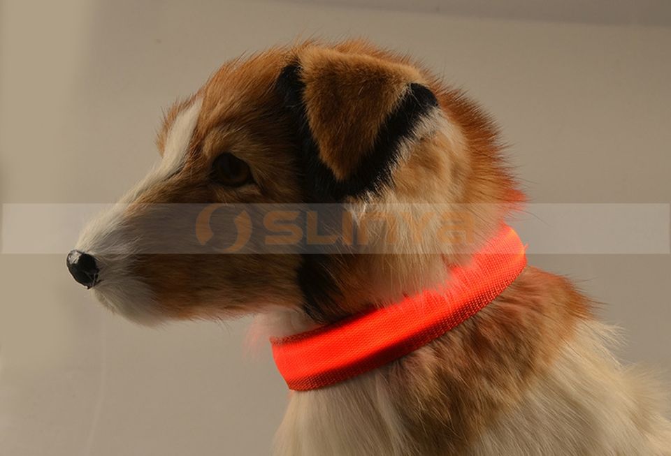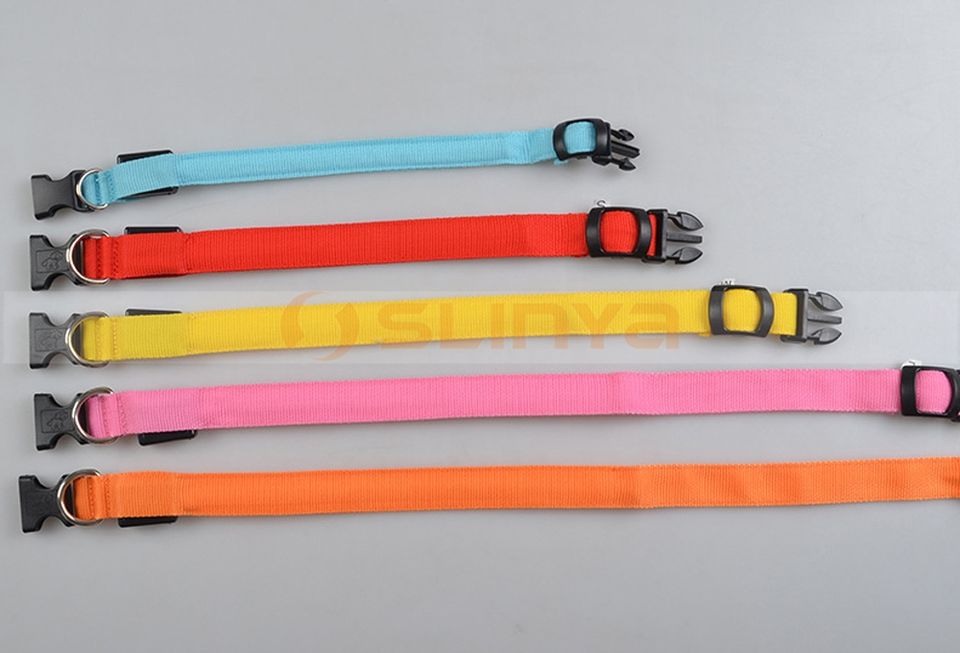 ปลอกคอนิรภัยสำหรับสัตว์เลี้ยงมีไฟ LED ไนลอนเรืองแสงในที่มืดสำหรับสุนัข