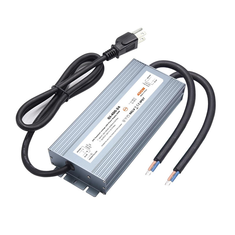 ไดร์เวอร์ LED 400 วัตต์กันน้ำ IP67 แหล่งจ่ายไฟ 85V-265V AC เป็น 24V DC คอนเวอร์เตอร์,หม้อแปลงไฟ LED ขนาดเล็กและเงียบ แรงดันต่ำ
