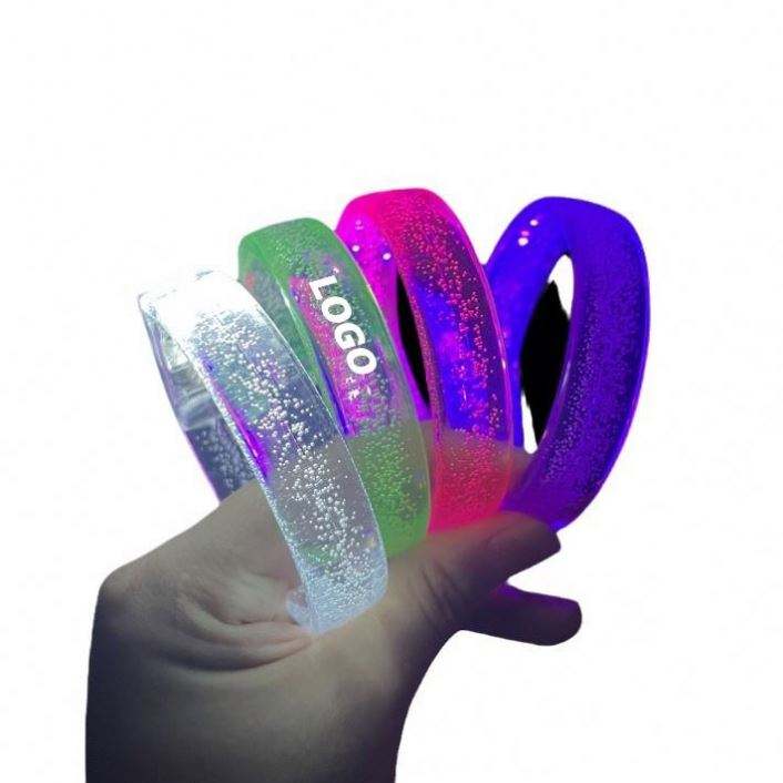 กำไลข้อมืออะคริลิคแบบมีไฟ LED กระพริบ เป็นมิตรกับสิ่งแวดล้อม แฟชั่นเก๋ไก๋ ของชำร่วยงานปาร์ตี้แบบกำหนดเองได้