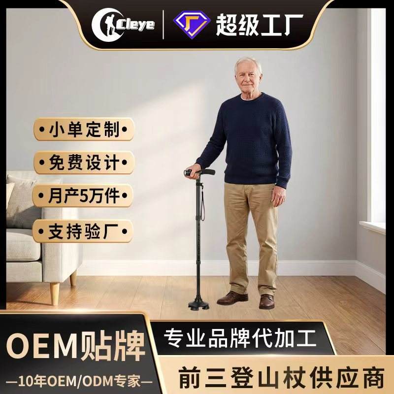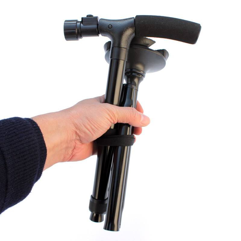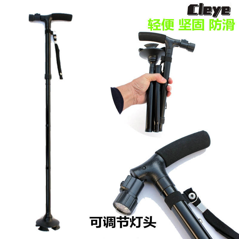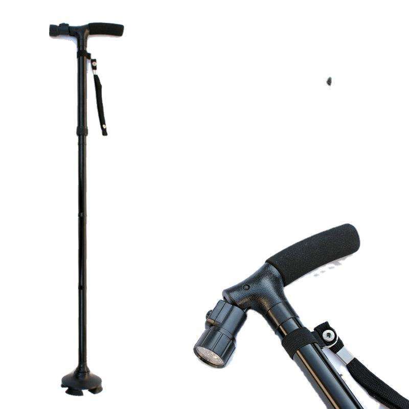 ไม้เท้าพับได้แบบ LED สำหรับผู้สูงอายุ พร้อมแกนอะลูมิเนียมอัลลอยด์น้ำหนักเบา ปลายยางสีดำ 3 ข้อต่อ รองรับการใช้งานได้หลากหลาย