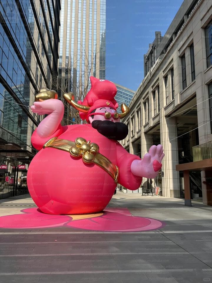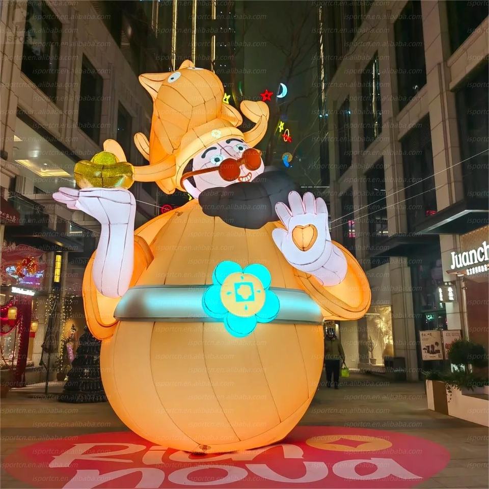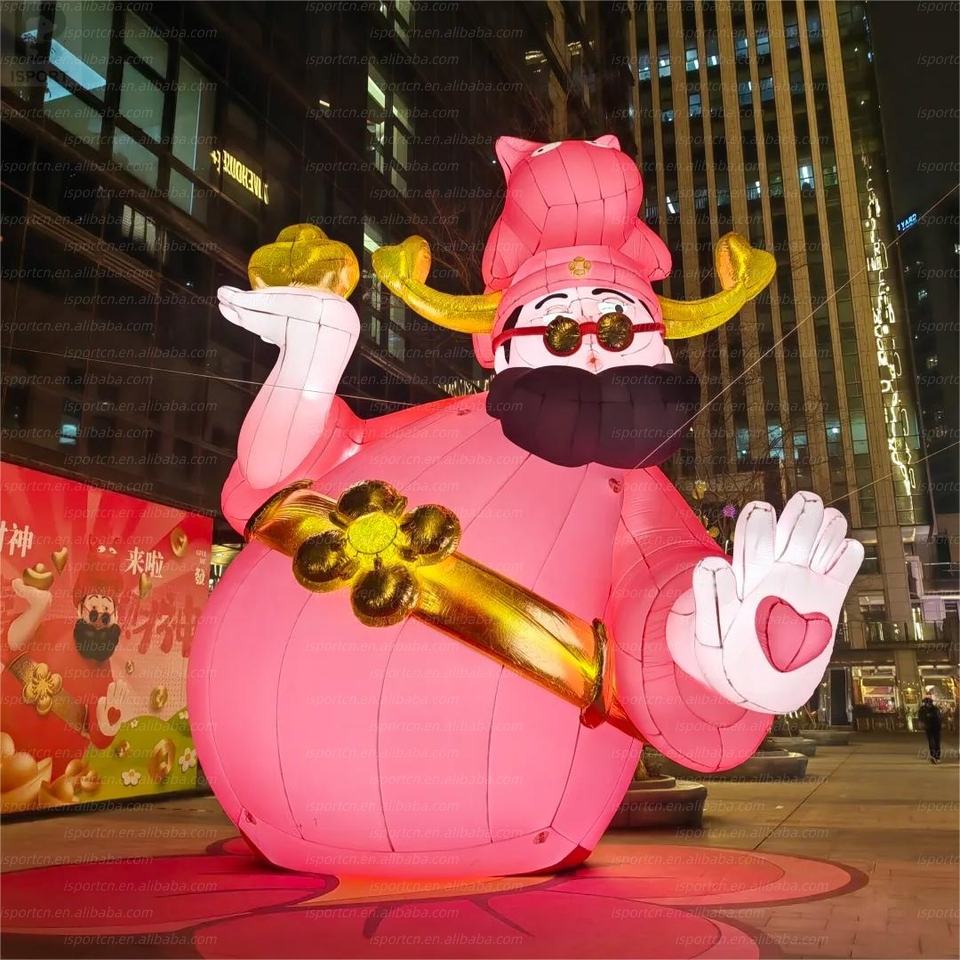 ไฟ LED รูปเทพเจ้าแห่งความมั่งคั่งสีชมพูขนาดใหญ่ ของตกแต่งปีใหม่จีนแบบเป่าลม สำหรับโปรโมชั่นร้านค้า/งานวัฒนธรรม/ปีใหม่/งานปาร์ตี้/งานถนน