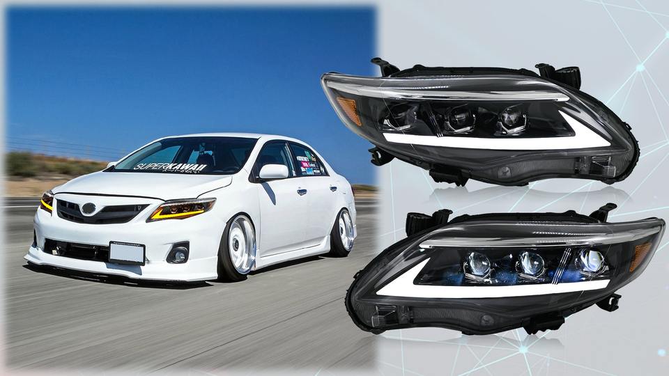 ไฟหน้า LED พร้อมภาพเคลื่อนไหวแบบไดนามิกสำหรับ Toyota Corolla 2011-2013 Sedan DRL ตามลำดับอำพัน IP67สัญญาณเลี้ยวกันน้ำ