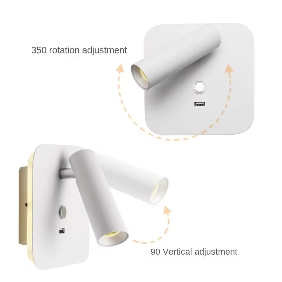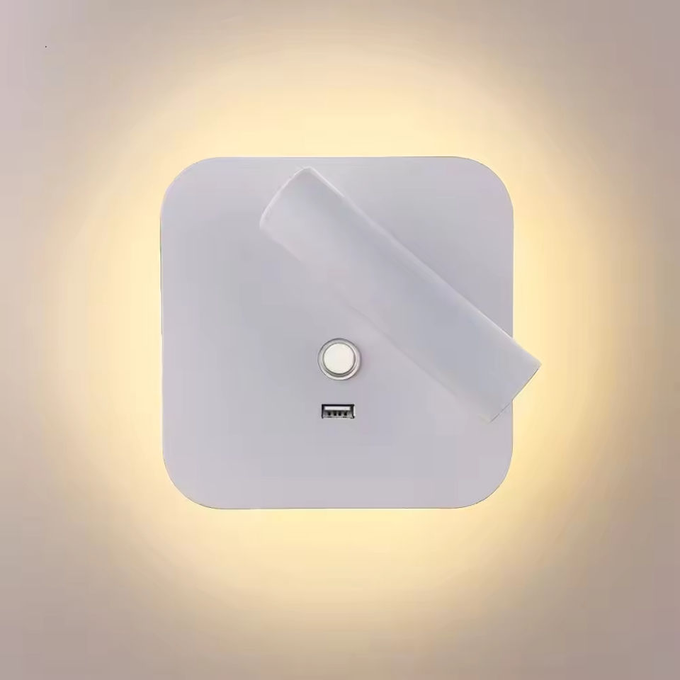 โคมไฟ LED ติดผนังในร่มแบบทันสมัยโคมไฟอลูมิเนียมหรี่แสงได้แบบสัมผัสโคมไฟอ่านหนังสือข้างเตียงช่องชาร์จ USB ทรงสี่เหลี่ยมไฟอบอุ่นสีขาว CRI 80
