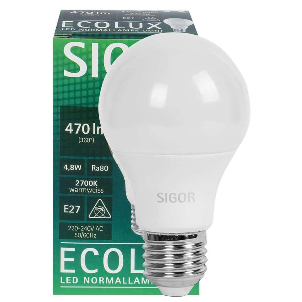 ไฟ LED, ecolux, รูปแบบ AGL, E27, 2700K, 4,8W (40W), 470 LM (9019601220)