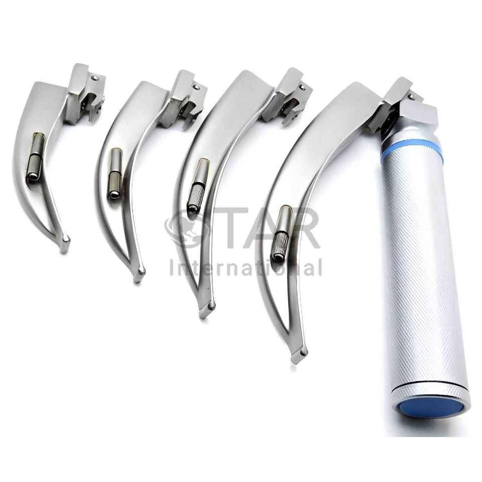 ชุดเครื่องมือผ่าตัดกล่องเสียงสำหรับผู้ใหญ่แบบมีไฟ LED เครื่องมือทางการแพทย์สำหรับการจัดการทางเดินหายใจมี4ใบมีด