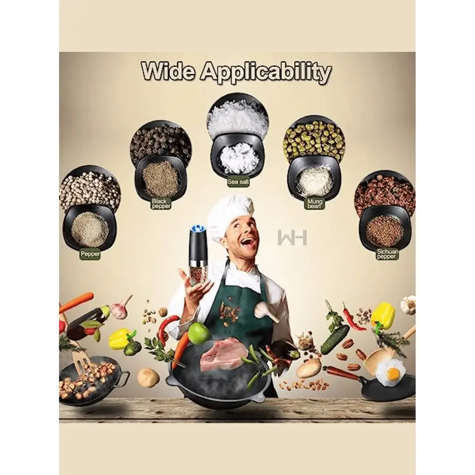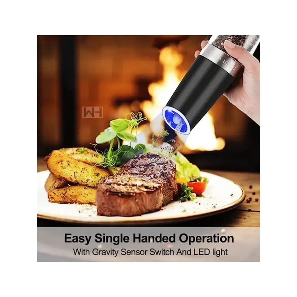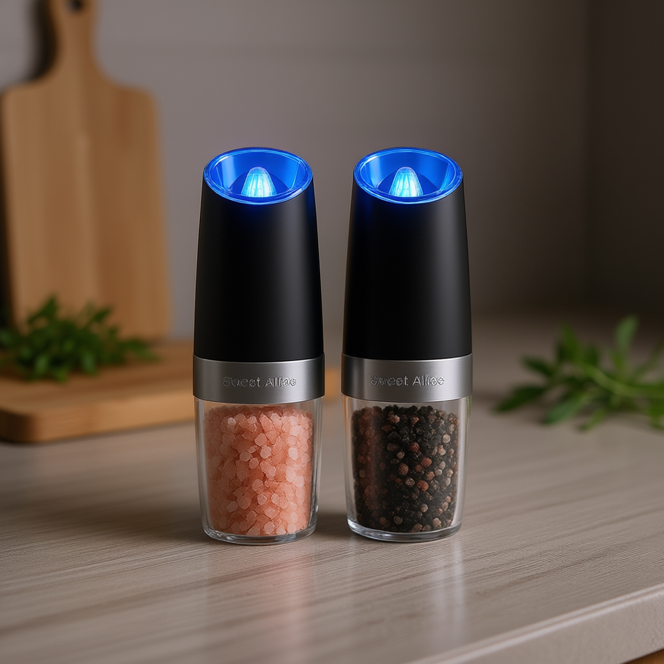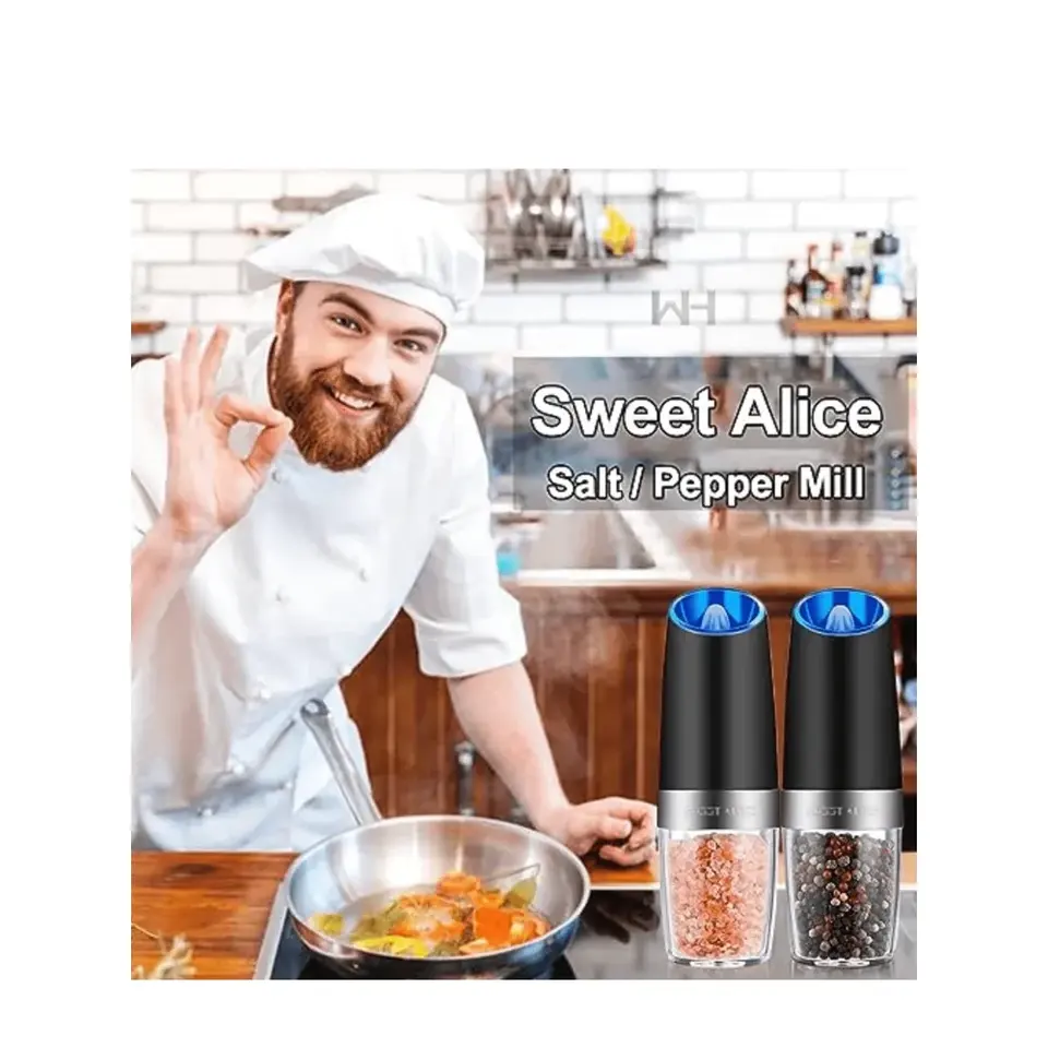 สวีทอลิซเครื่องบดเกลือไฟฟ้าอะคริลิคสีดำไฟ LED สำหรับห้องครัว 2 แพ็ค