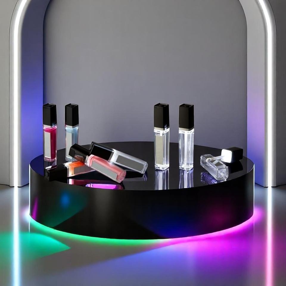 หลอดลิปกลอสแบบมีไฟ LED พร้อมฝาเกลียว ความจุ 9 มล. ทำจากพลาสติก
