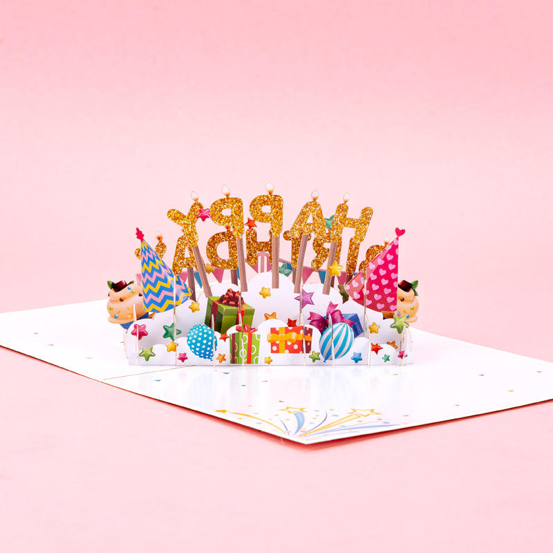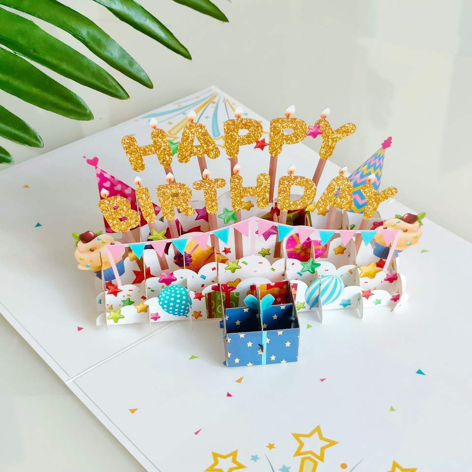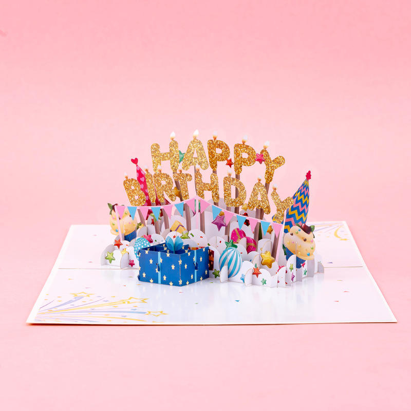 การ์ดอวยพรเค้กเพลงแบบมีไฟ LED การ์ดวันเกิดแบบป๊อปอัพ3D การ์ดอวยพรวันเกิดสุขสันต์วันเกิดพร้อมซองจดหมาย
