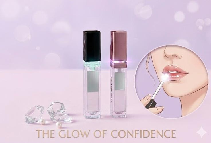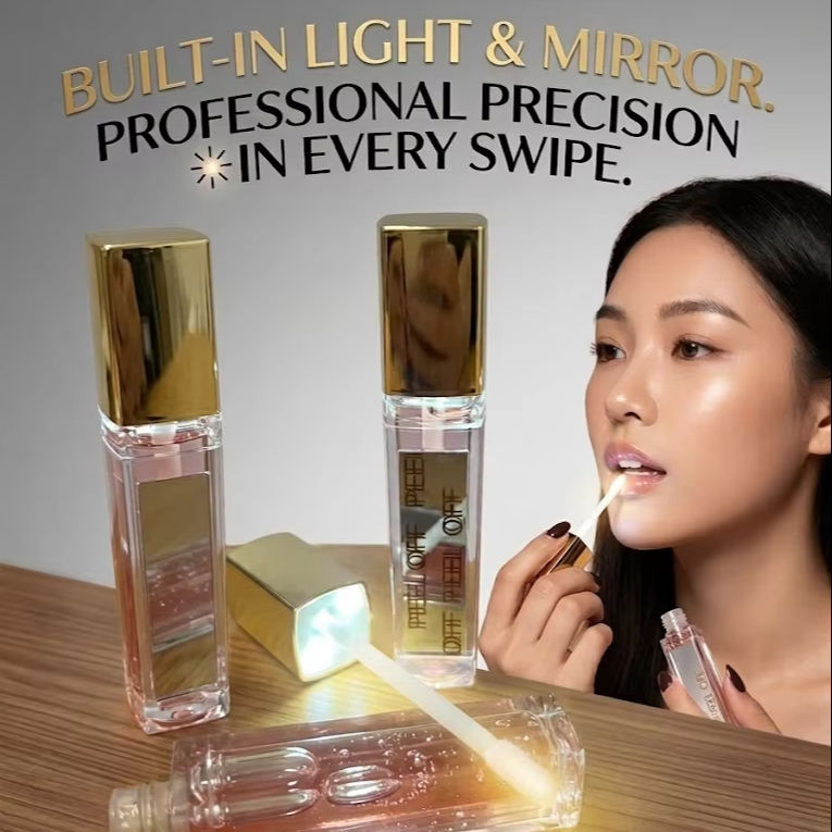 ลิปกลอสพลาสติกพร้อมไฟ LED และกระจก 6.5 มล. เครื่องสำอาง