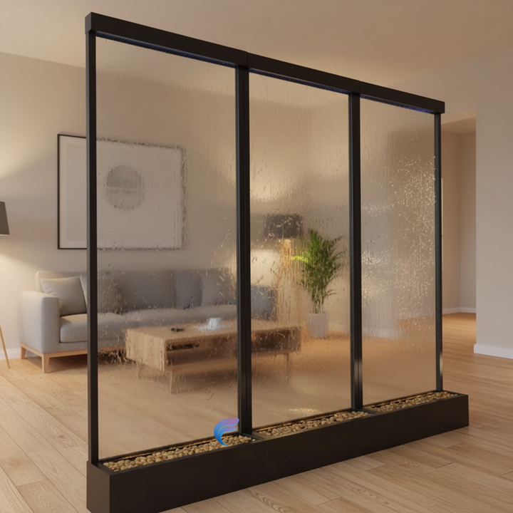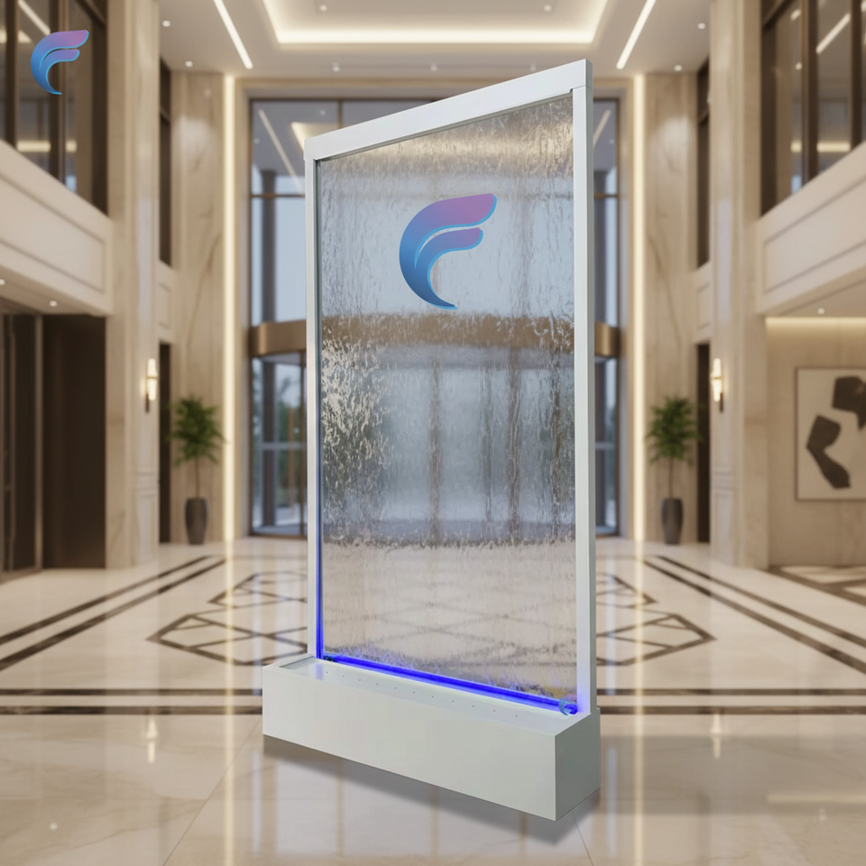 ไฟ LED ตกแต่งม่านน้ำกราฟิก น้ำตกจำลองในร่ม ดีไซน์ทันสมัย สำหรับงานแต่งงาน ทำจากสแตนเลสและกระจกนิรภัย