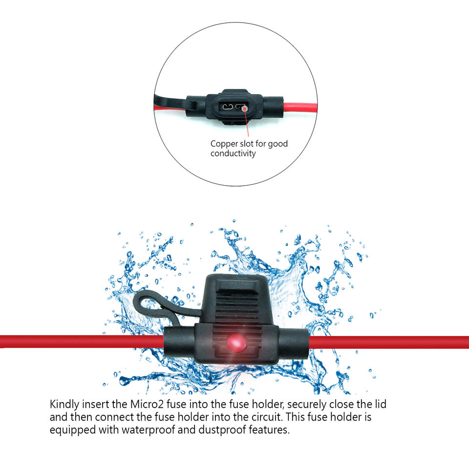 ตัวยึดฟิวส์แบบอินไลน์ LED Micro II พร้อมฝาปิด