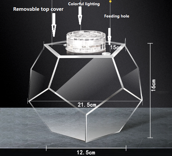 ตู้ปลาอะคริลิค LED หลายเหลี่ยม, โต๊ะทํางานขนาดเล็กโปร่งใส, ห้องนั่งเล่นตู้ปลาทองแนวนอนขนาดเล็ก