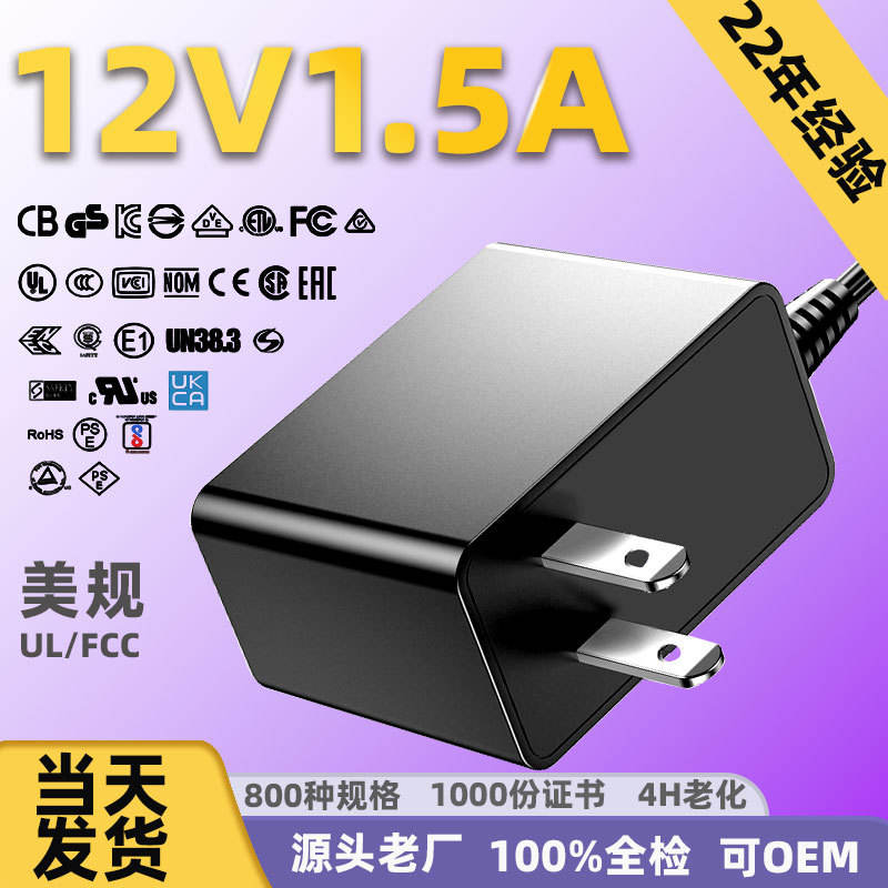 อะแดปเตอร์ไฟ LED 12V 1.5A ปลั๊ก US 18W เอาต์พุต DC ได้รับการรับรองสำหรับแถบนำความร้อนสายพาน