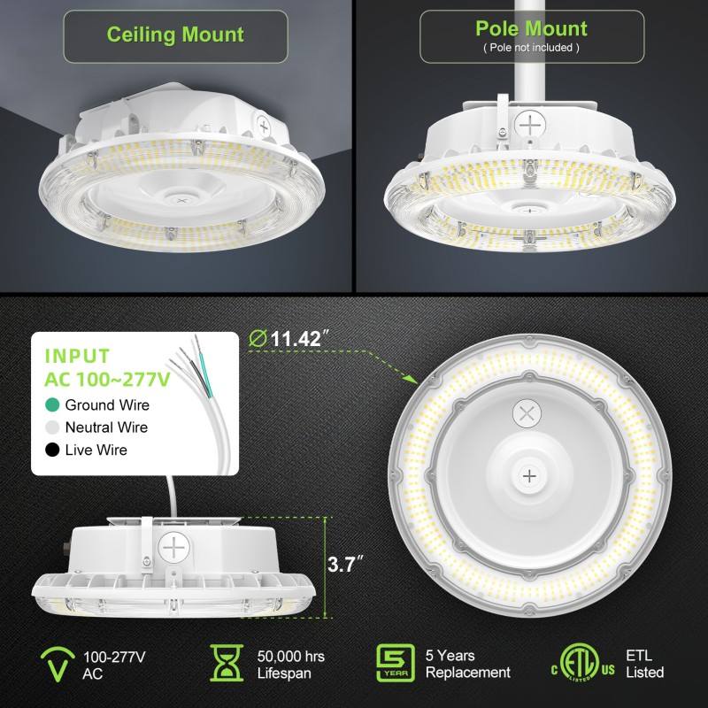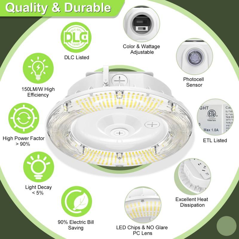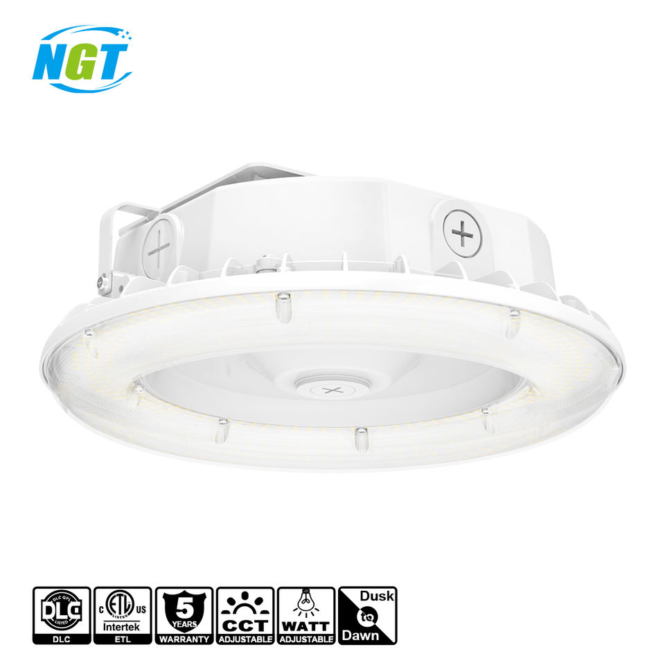 ไฟ LED ทรงกลมสำหรับหลังคา 100W/80W/60W ปรับค่าสีได้ CCT 4.5/5/5.7K 100-277VAC โคมไฟ LED สำหรับปั๊มน้ำมัน IP65 พร้อมโฟโตเซลล์
