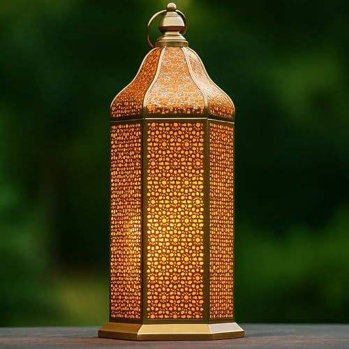 โคมไฟ LED รอมฎอนมูบารัค, โคมไฟกลางคืนสไตล์อาหรับย้อนยุค, โคมไฟแขวนโลหะลายฉลุสำหรับวันอีด