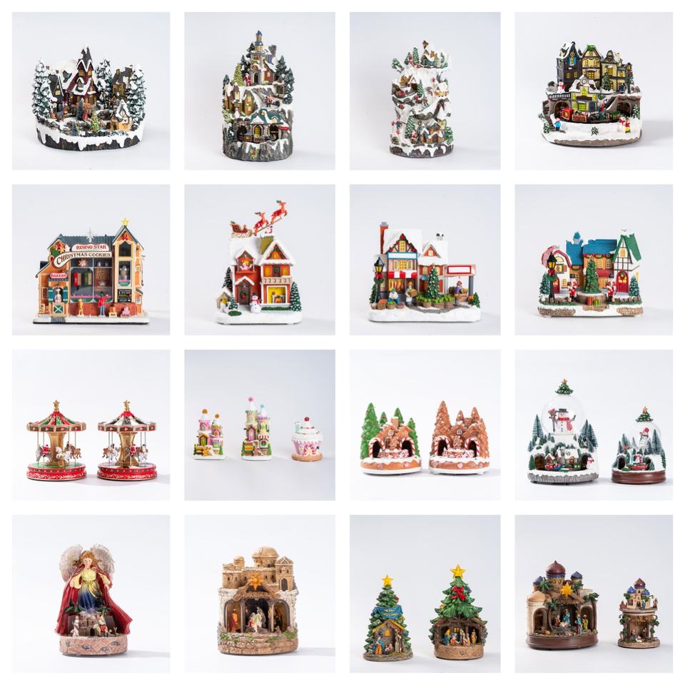 ของตกแต่งหน้าต่างรูปเตาผิงหมู่บ้านคริสต์มาสแบบหมุนได้พร้อมไฟ LED พร้อมเพลง บลูทูธ และการตกแต่งที่ปรับแต่งได้