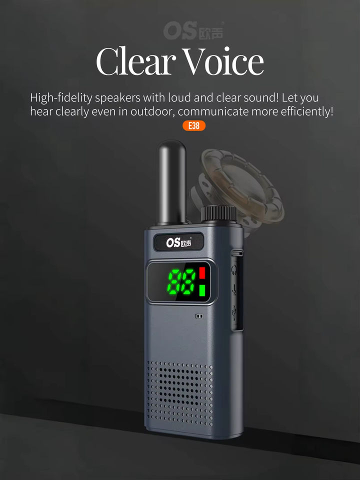 E38วอล์กกี้ทอล์กกี้หน้าจอ LED 400-520MHz SINGLE band UHF 99 CH ตัวรับส่งสัญญาณแบบพกพาวิทยุ Ham กันน้ำ