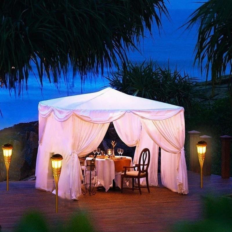 ไฟฉาย LED พลังงานแสงอาทิตย์ รูปทรงเปลวไฟ โคมไฟไม้ไผ่จำลอง กันน้ำ ตกแต่งสวน ทางเดินสนามหญ้า ลานบ้าน โคมไฟตั้งพื้น