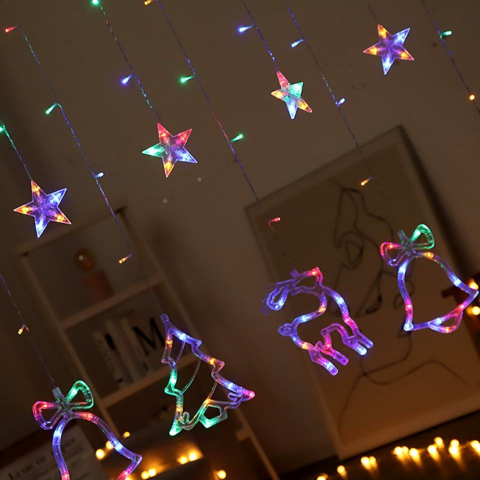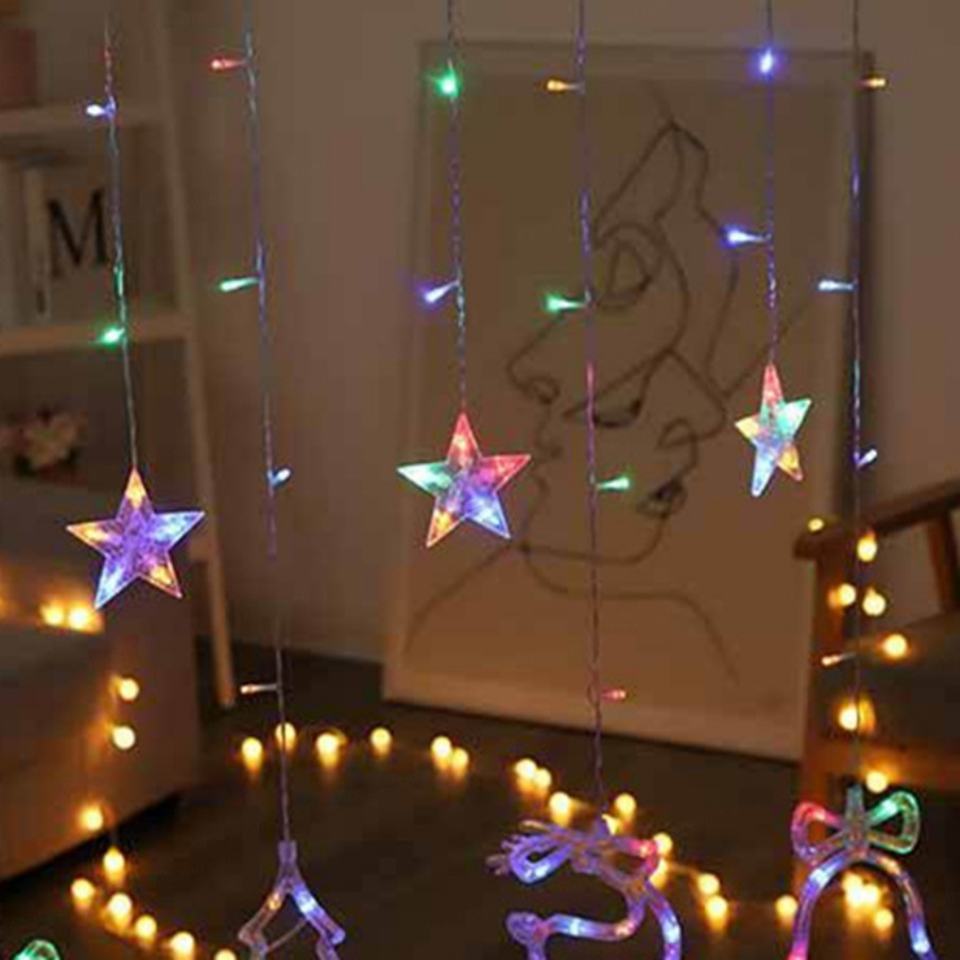 ไฟ LED พลังงานแสงอาทิตย์รูปดาวและพระจันทร์ ระดับ IP65 สำหรับตกแต่งเทศกาลกลางแจ้ง ลานบ้าน แคมป์ปิ้ง คริสต์มาส ดาวหลากสีสัน