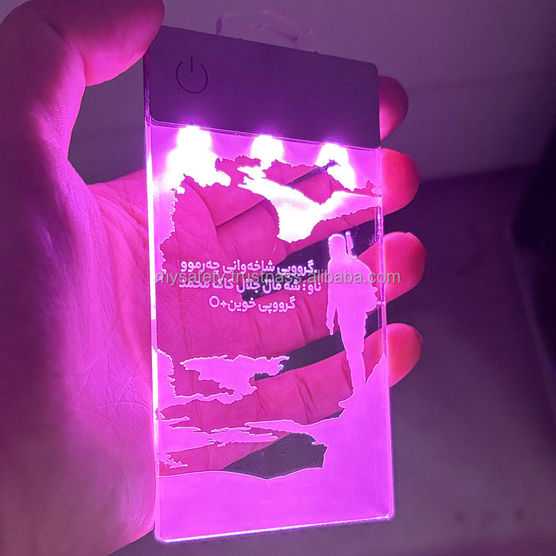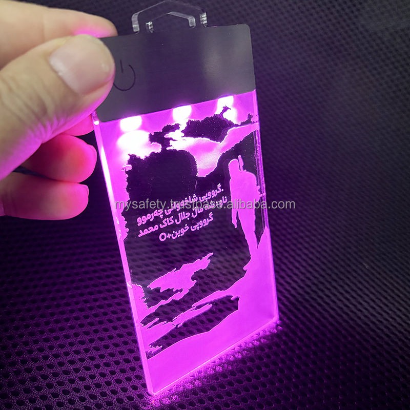 บัตรพนักงาน LED แบบกำหนดเอง ป้ายชื่อพนักงาน ป้ายติดบัตรพลาสติกแบบพิเศษ สลักลายได้ พร้อมแผ่นสัมผัส สวิตช์แบบใช้แบตเตอรี่ พิมพ์ลายได้