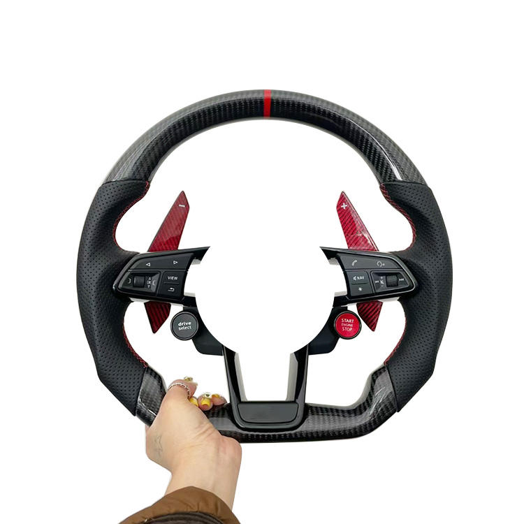 พวงมาลัยแอลอีดีสำหรับ RS7รถออดี้ A4 B9 RS6 A3 S4 S5 8P A1 RS5 Sline 8V พวงมาลัยคาร์บอนไฟเบอร์